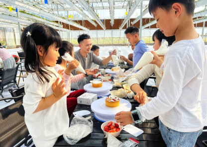 采摘结束后,草莓蛋糕DIY环节无缝衔接。专业烘焙老师现场指导,游客们亲手将新鲜草莓与柔软蛋糕胚融合,打造专属甜蜜。亲子搭档、好友协作,在动手过程中收获满满成就感,为这场田园之旅增添了温情记忆。