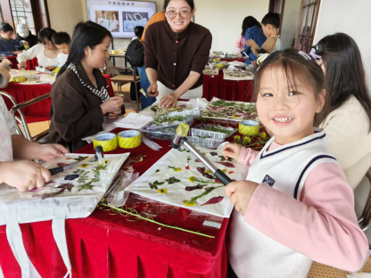 非遗手作区的植物拓印教学,为田园之旅注入浓厚文化底蕴。专业老师细致讲解拓印的历史渊源与美学价值,从植物甄选、纹样设计到染色固色,一步步拆解技法,让游客深入领略非遗魅力。