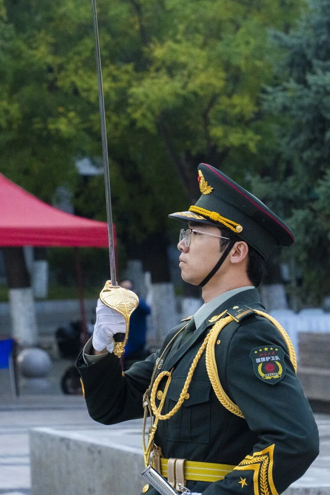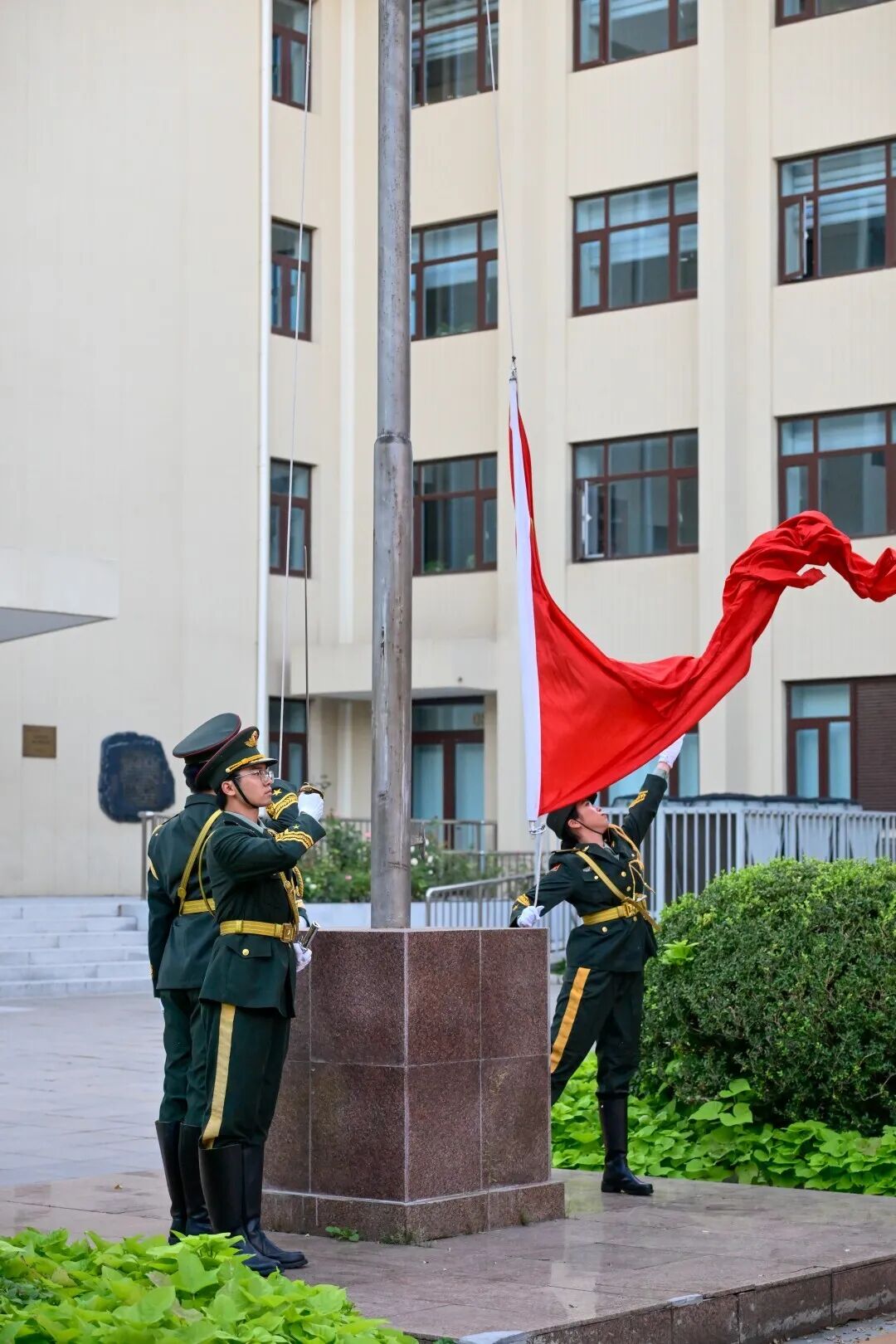 作为国旗护卫队的一员,我非常荣幸能够参与本次升旗。当初我怀着对祖国的热爱、怀着对国旗的敬仰,加入国旗护卫队。入队以来,我心中对于国旗的向往、对于护卫队的向往未曾褪色。今日我们怀着这种热忱向祖国致敬,祝愿祖国繁荣昌盛,海晏河清!
