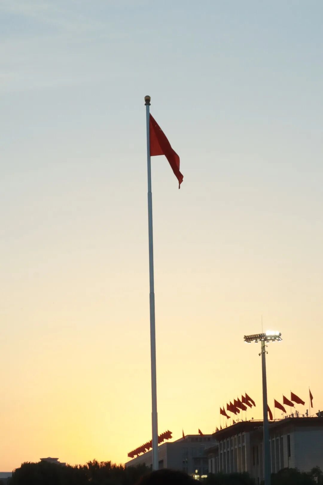 护送国旗在晨曦中匀速上升