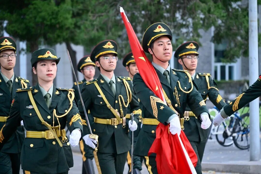 加入国旗护卫队,是我对那身戎装、那份庄严最执着的奔赴。在国庆日穿上正装,迎着晨曦昂首挺胸,将五星红旗高高扬起,让它在风中猎猎作响——那一刻,胸中涌动的,是属于一个中国人的滚烫骄傲。我们迈出的不仅是正步,更是对先辈的告慰,对和平的致敬。愿北大这片精神的家园永远青春、思想常新;更愿我深爱的祖国,繁荣长在,国泰民安!